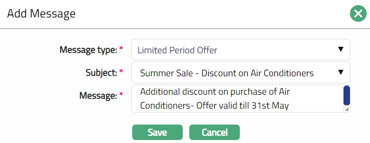 - Click Add. Add Message window appears.