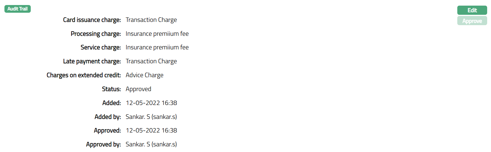 Note: Once the charge is added or any changes made, the charge tab will be in the Pending status. On Approval, the charges will be applicable on the new Accounts created based on this product.