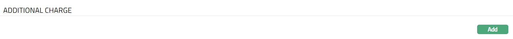 The Additional Charge tab allows you to view and maintain additional charges for the Product -- apart from the ones that are specified under Charges tab.