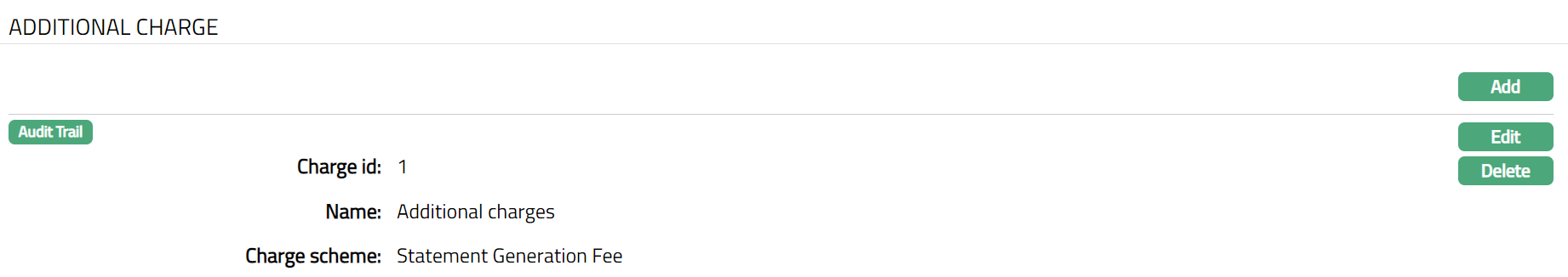 - Click Save. Additional Charge page appears with the edited details.
