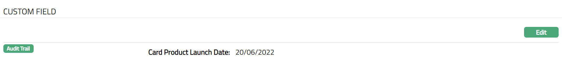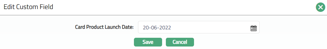 Click Edit. Edit Custom Field page appears. In the following illustration, a custom field, Card Product Launch Date has been mapped to the Product as shown below: