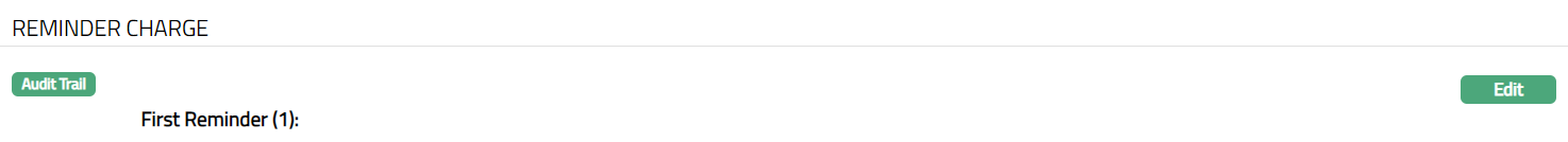 - Access Charge Group page and click Reminder Charge. This will display the Charge schemes maintained in the Charge Group for the various Reminder Charges of the Product. On creation of the new Charge Group, this will be blank.