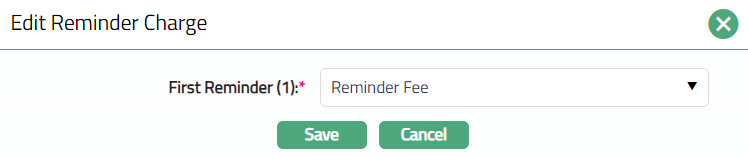 Select Charge scheme for the Reminder Charges from the drop-down list of all the active Event based Flat Charge schemes maintained under Admin > System Codes > Charges > Charges.