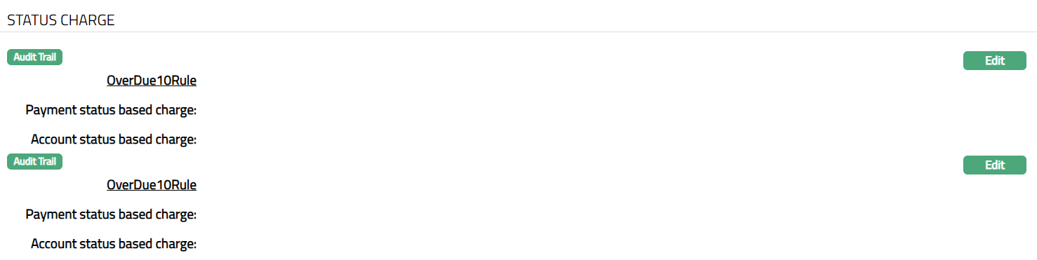 Access Charge Group page and click Status Charge. This will display the Charge schemes maintained in the Charge Group for the various Status Charges of the Product. On creation of the new Charge Group, this will be blank.
