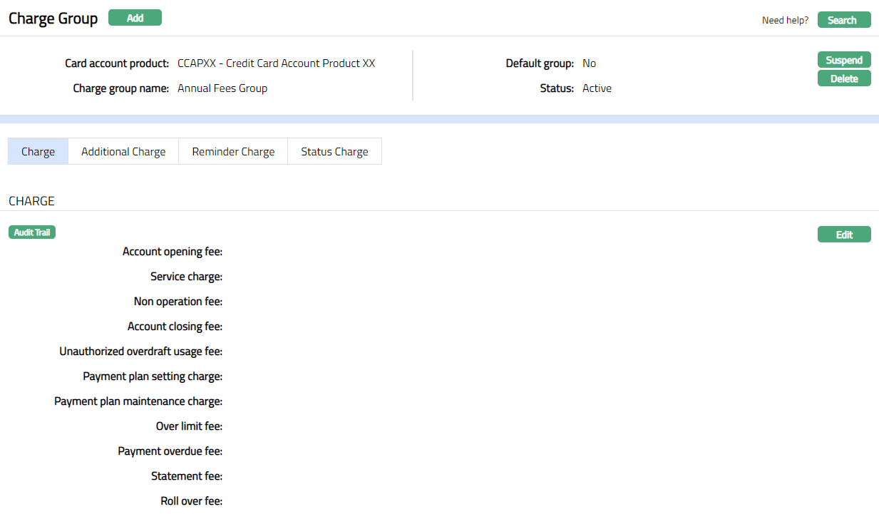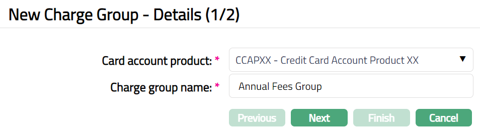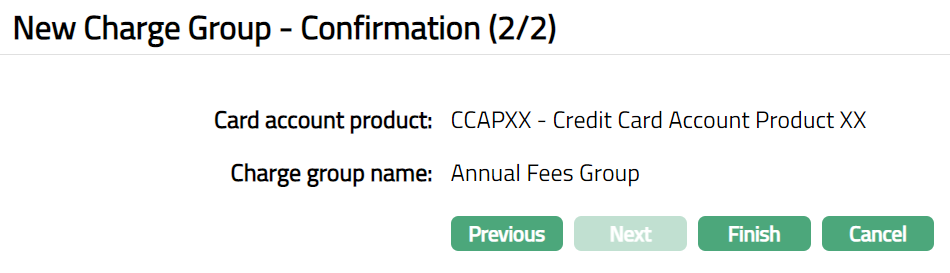You can create other Charge Groups for a Card Account Product using this option and use the Default Group or any of these additional groups during the Card Account creation.