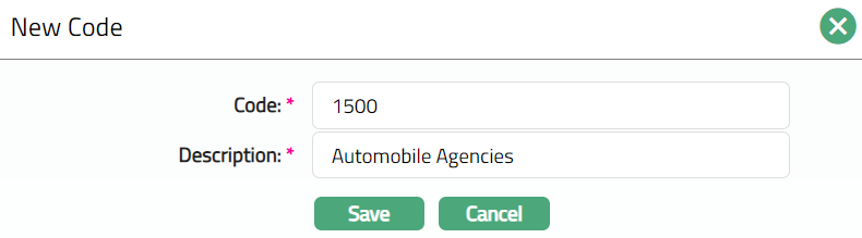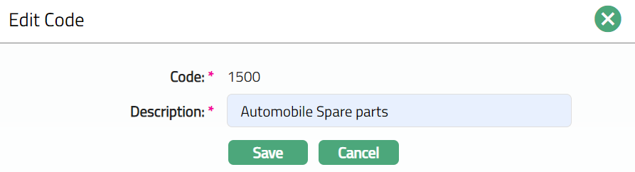 Delete: To Delete Merchant Category Codes click Delete button, Aura will ask for confirmation. On confirmation if the merchant is not mapped to any card product, then the merchant code is deleted.