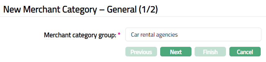 Note: When you click finish, merchant category group is created, and you are allowed to add multiple merchants to the group.