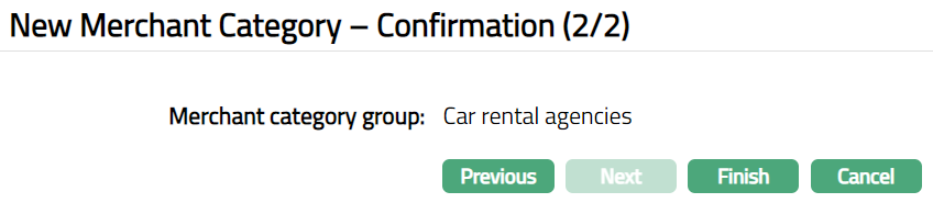 Click Next. New Merchant Category -- Confirmation (2/2) page appears.