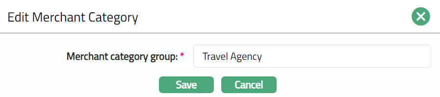 Delete: To delete Merchant Category click Delete button, Aura will ask for confirmation. On confirmation if there are no merchants added to the merchant category group, then the merchant category group is deleted.