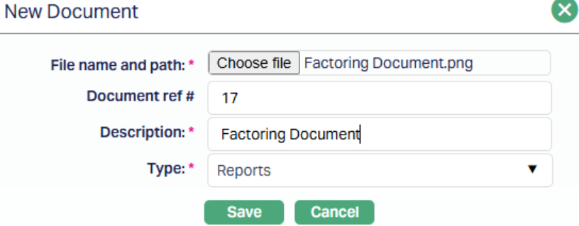 6. Select Type of the document uploaded. The document types should have been maintained from Admin > System Codes > Documents > Document types. Once entered, this cannot be edited.