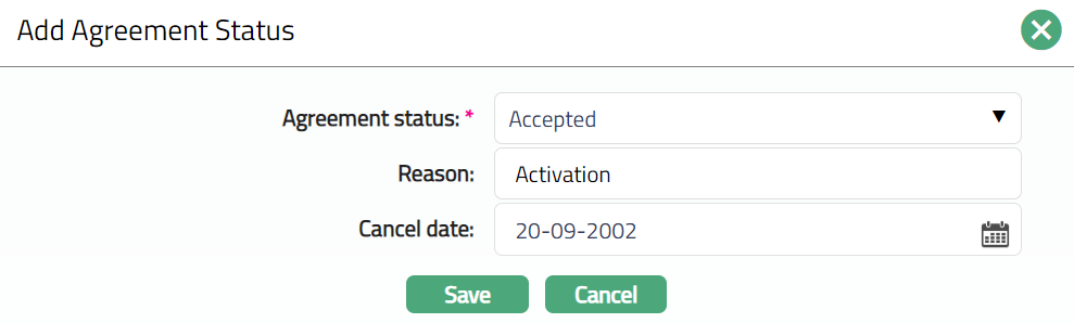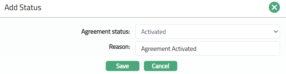 Enter Reason for adding the agreement status.