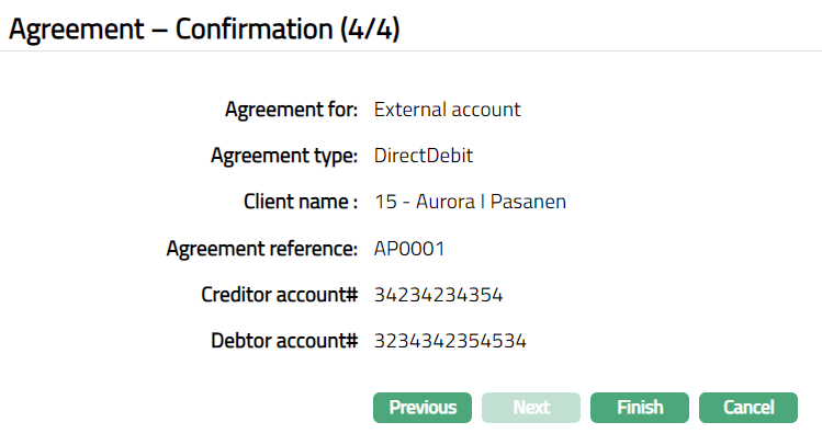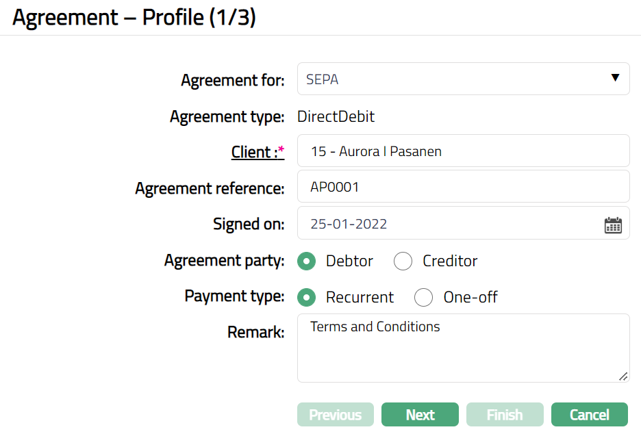 By default, Agreement type will be DirectDebit.