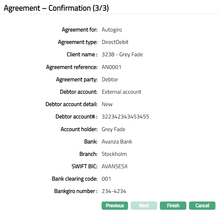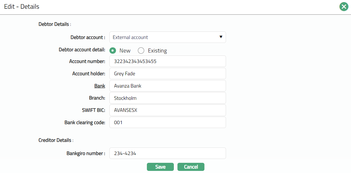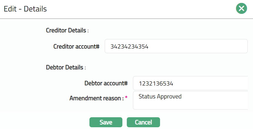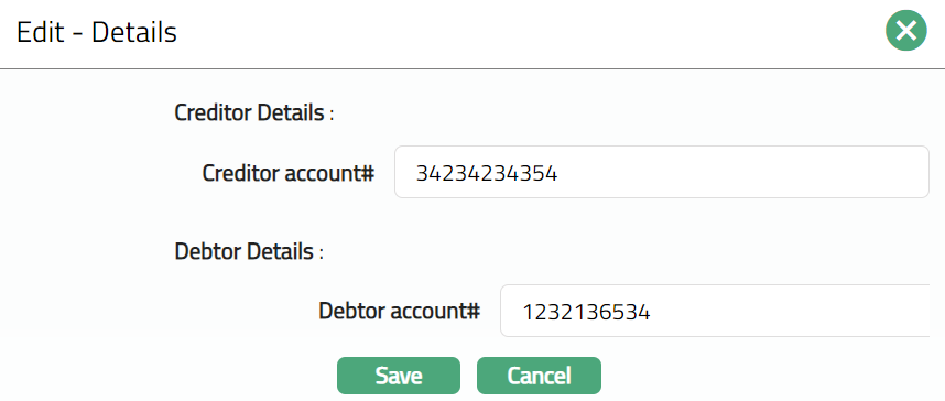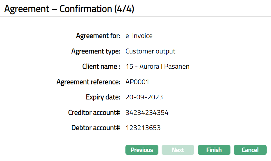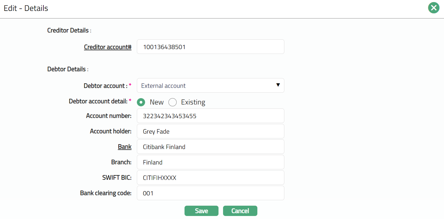 Based on the Agreement Party selection done here, you will have to fill in the Creditor and Debtor details in the Agreement -- Details (2/3) page.