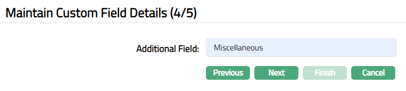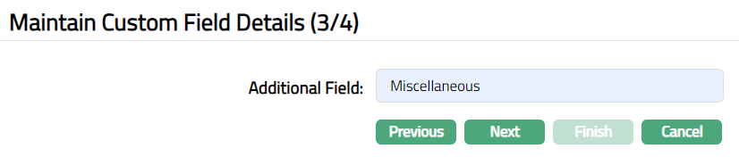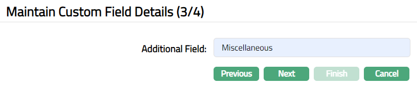 Note: If the custom field is mapped to Agreement under Admin > System Codes > Custom fields > Field mapping, then an additional screen will appear before the confirmation screen. The custom fields will be mandatory or non-mandatory based on the rules set at the Field mappings. For more detail on custom field functionality please refer Admin> System codes > Custom fields > Field mappings manual.
