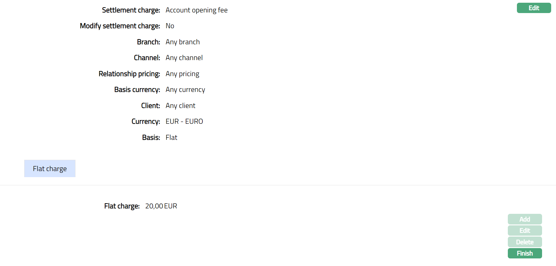Click Edit. Edit Flat Charge page appears.