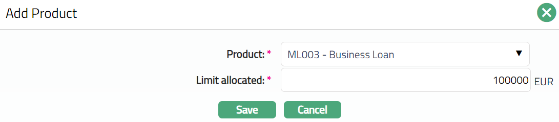 Select Owner Branch from the drop-down list of active branches. By default, the user's logged in branch is displayed. You can change to any other branch as required. This is the branch in which the Limit is maintained.