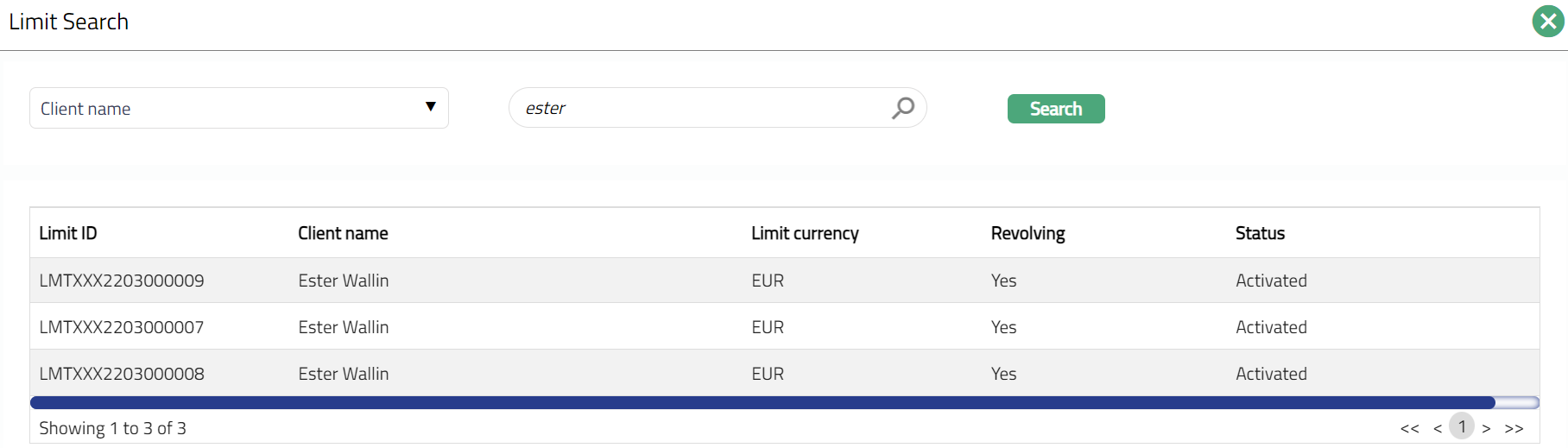 If you have marked the limit as Non-Revolving, the search page will display all Active, Revolving and Non revolving limits.