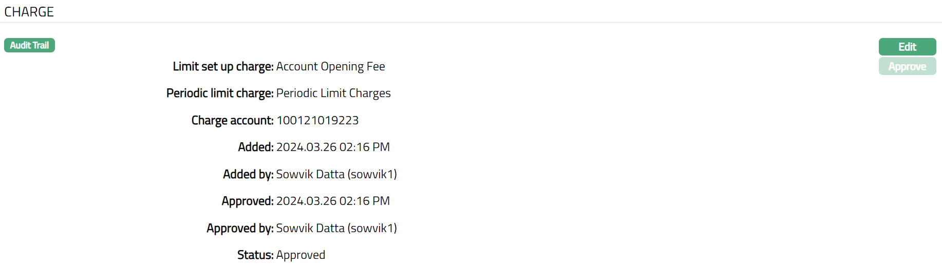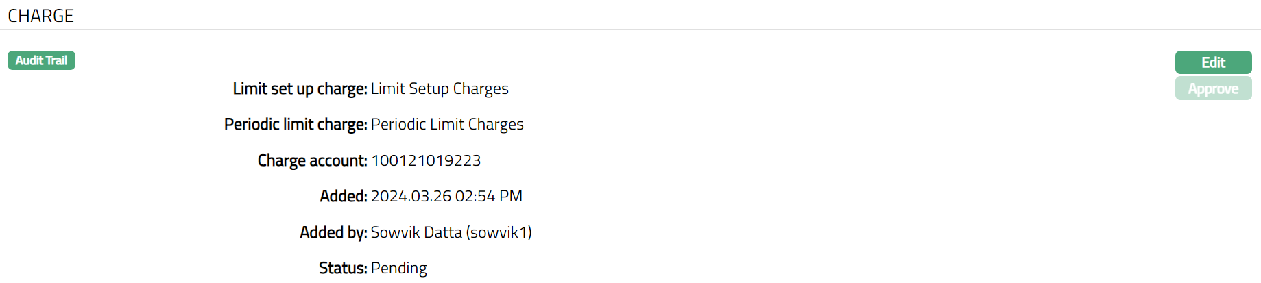 Note: On creation of the Limit, the Limit Status by default will be Activated and status of the record is Pending. Only on approval, the Limit will be Activated and Approved; and will be available to all modules.