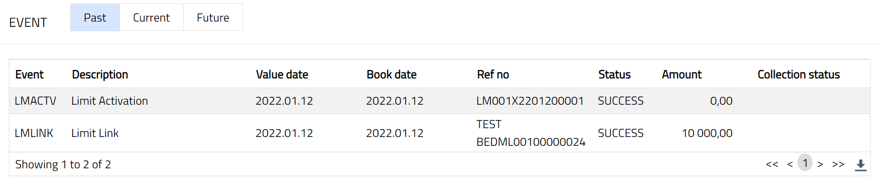 | LMLINK | Limit Linkage | This event will trigger when the limit is linked with any account or contract (example: CASA, Loan, Cards, or Forex) and approved. No accounting entries get posted for this event. |
