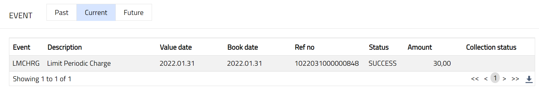 | LMCHRG | Limit Charge | This event occurs when the Limit is Activated and is approved. Once approved, the Periodic limit charge is triggered, and the accounting entries are posted. |