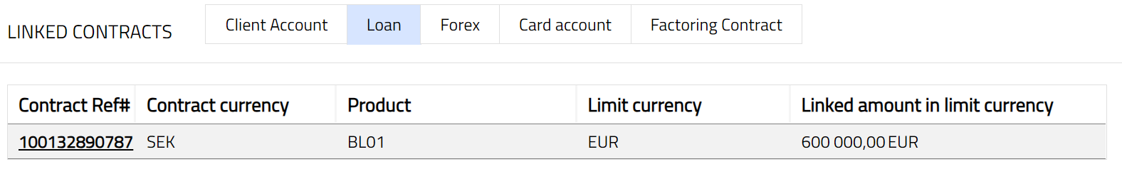 Linked amount in limit currency displays the amount in limit Currency linked to the loan account.
