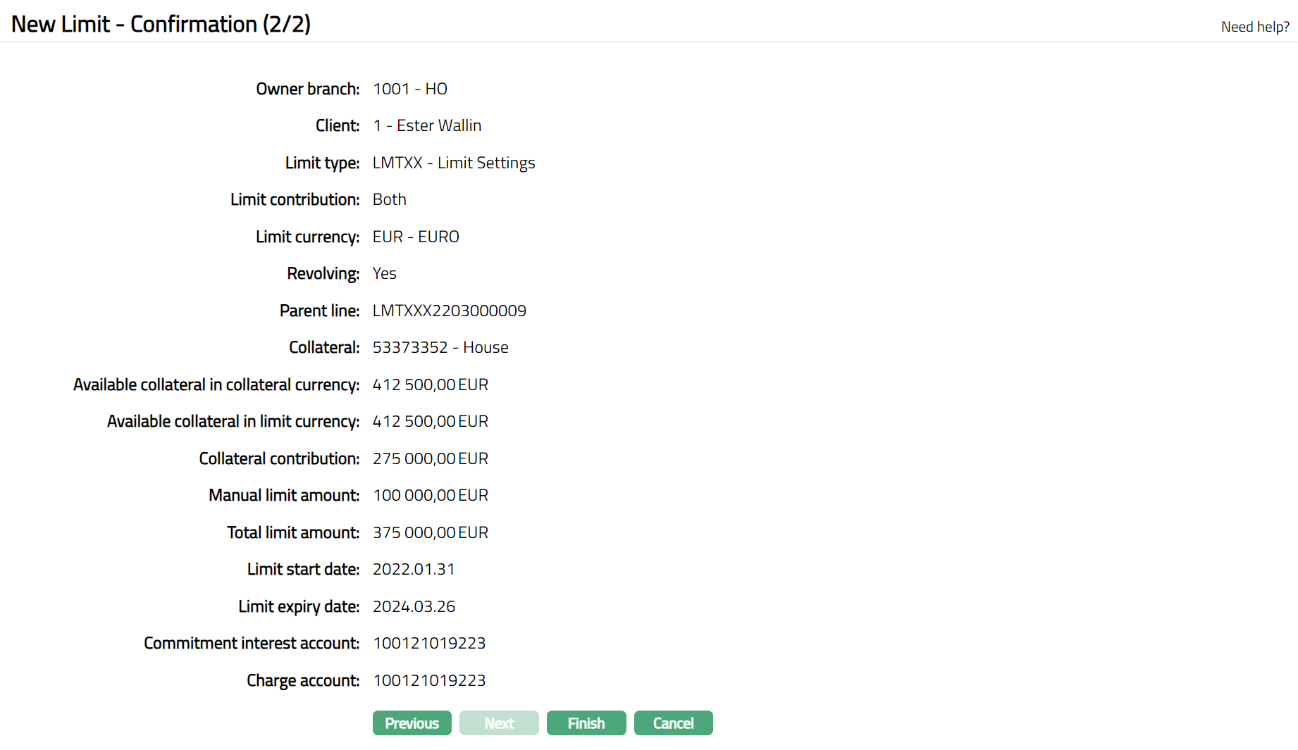 Click Next. New Limit-Confirmation (2/2) page appears.
