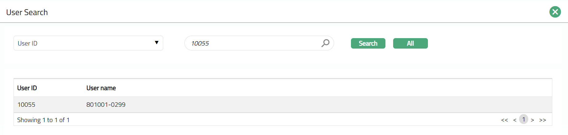 - Enter User ID of the User who is communicating with the client. Click on the hyperlink to see the list of channel banking users and select the required User ID as shown below.