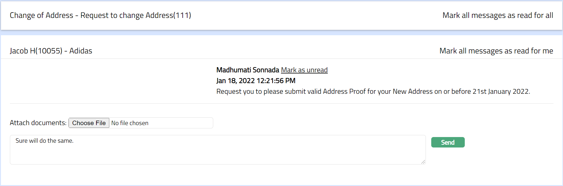 Note: All messages can be marked as Read or Unread by a single click on the message that appears on the right-side corner of the screen or other wise every individual message can be marked as Read or Unread by clicking the hyperlink option appearing right next to the Name of the channel banking user.