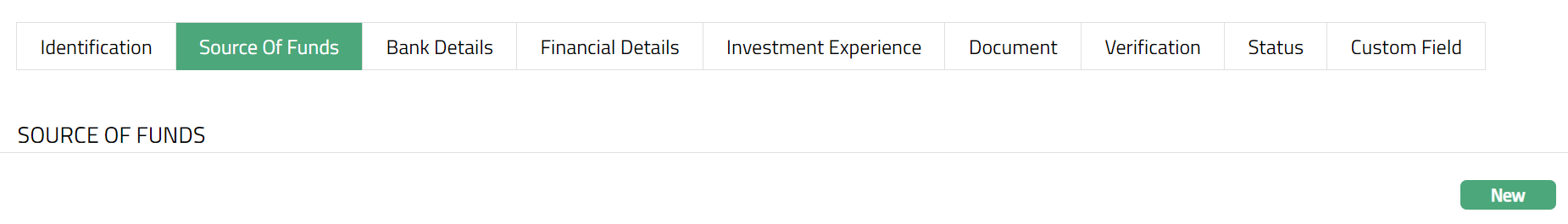 - Click New button. New Source of Funds page appears.