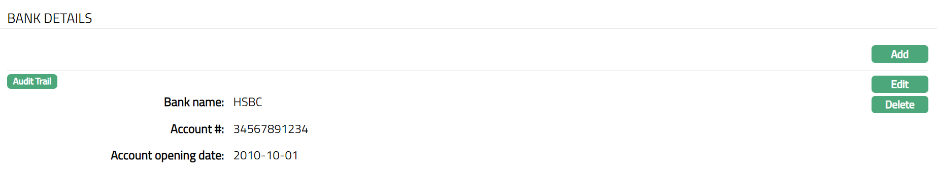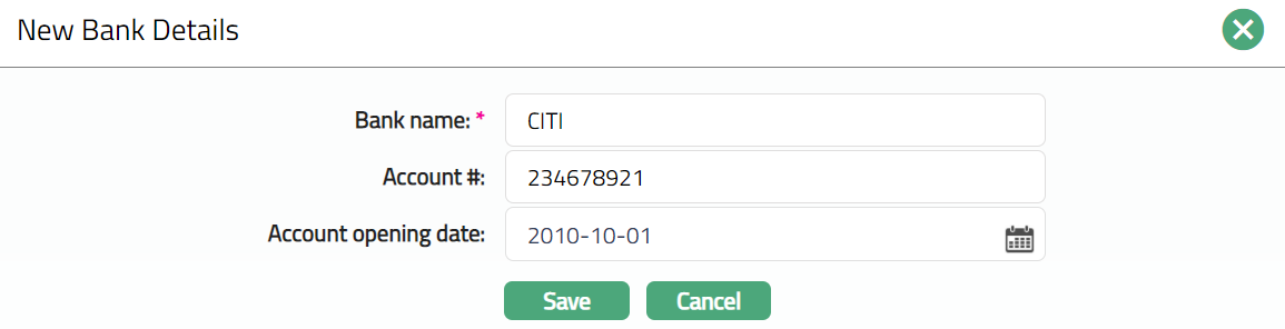 Bank details tab allows you to maintain the bank details of the organisation.