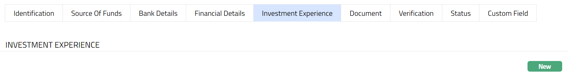 - Click New. New Investment Experience page appears.