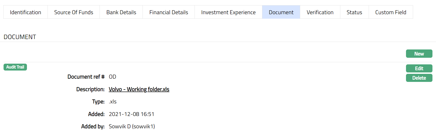 Access Organisation Due Diligence page and click Document tab.
