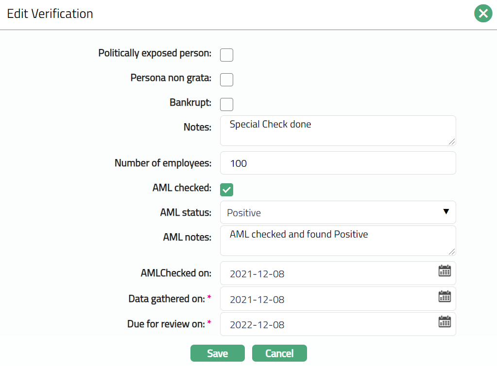 Enter AML checked on date. This is the date on which the AML check was done.