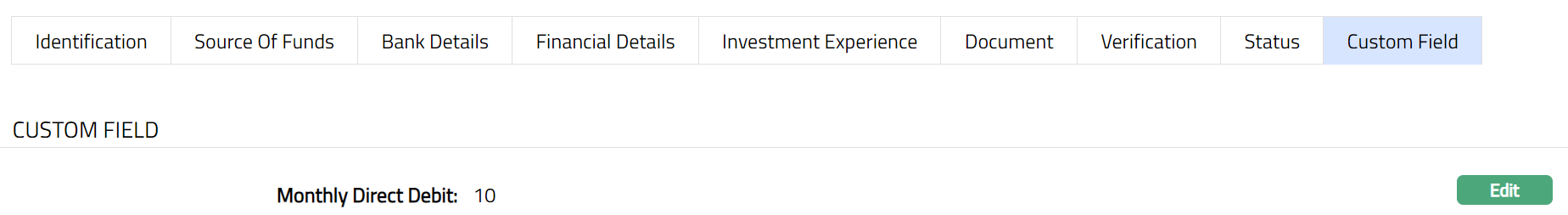 - Access Organisation Due Diligence page and click Custom Field tab.