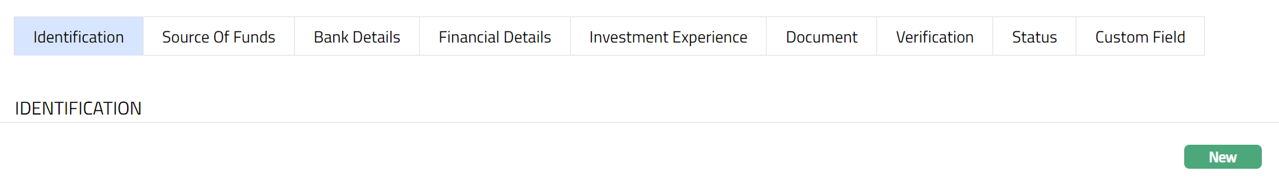 - Click New button. New Identification page appears.