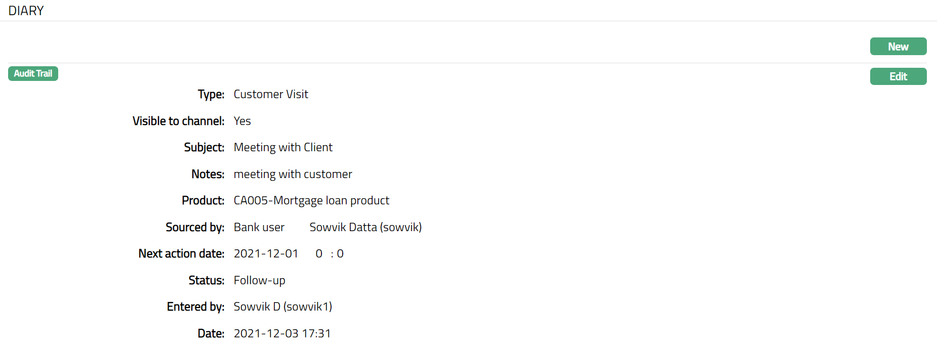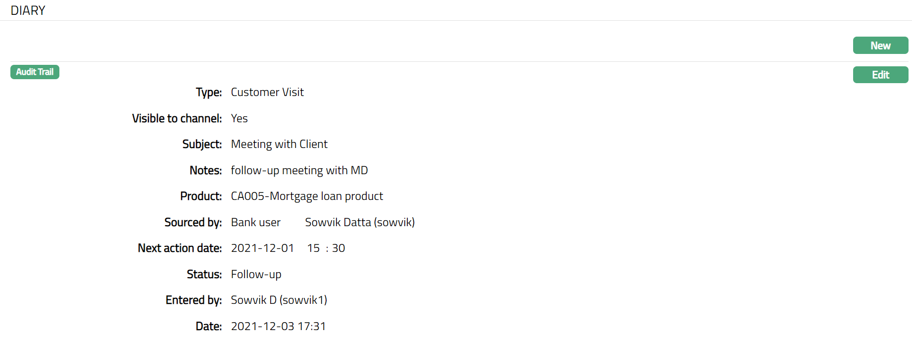 Credit score: A credit score is an indicator of a person's creditworthiness, or their ability to repay debt. It is usually expressed as a number based on the person's repayment history and credit files across different loan types and credit institutions. Credit score is also known as a credit rating. Note: This need to be fed manually as provided by the external agency.