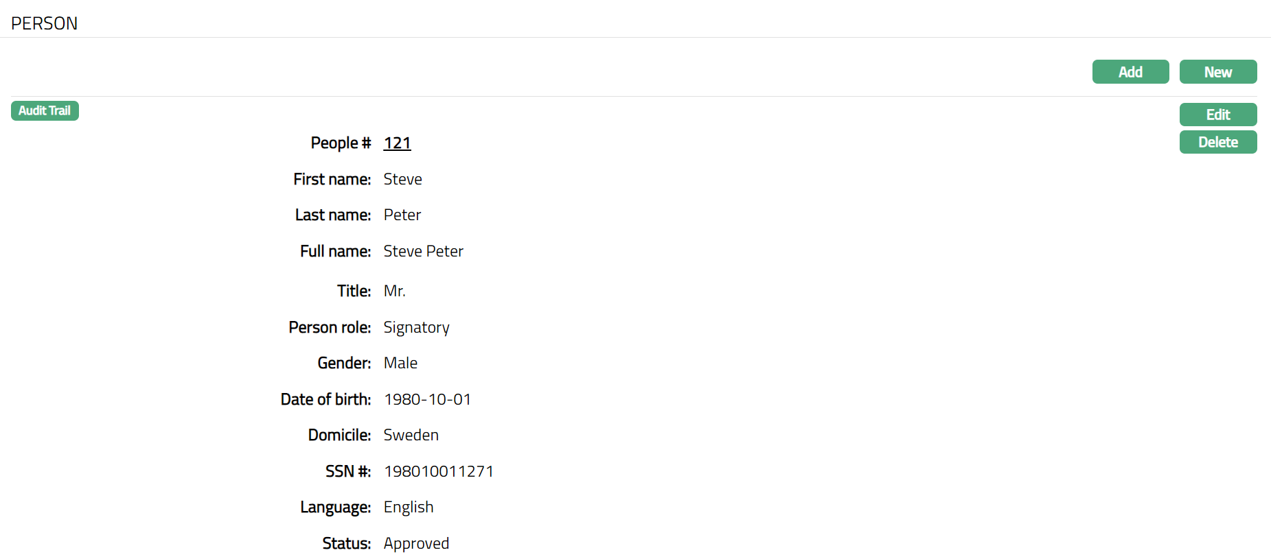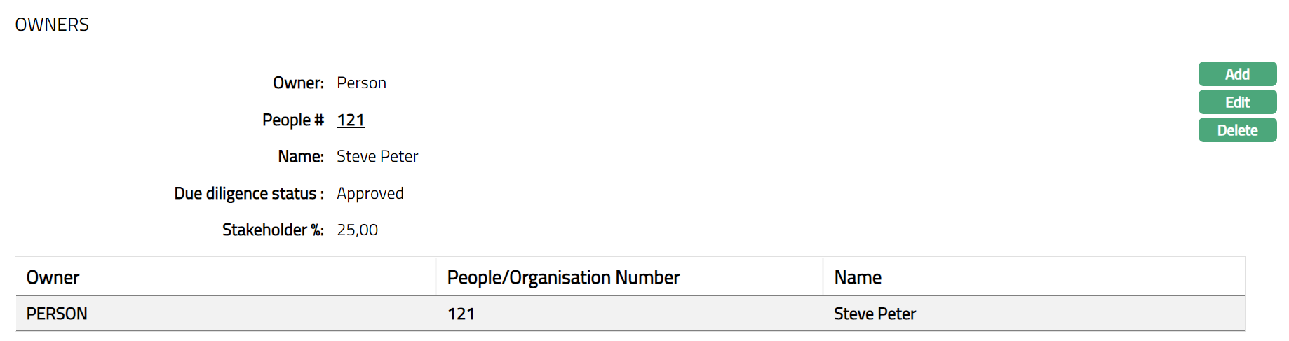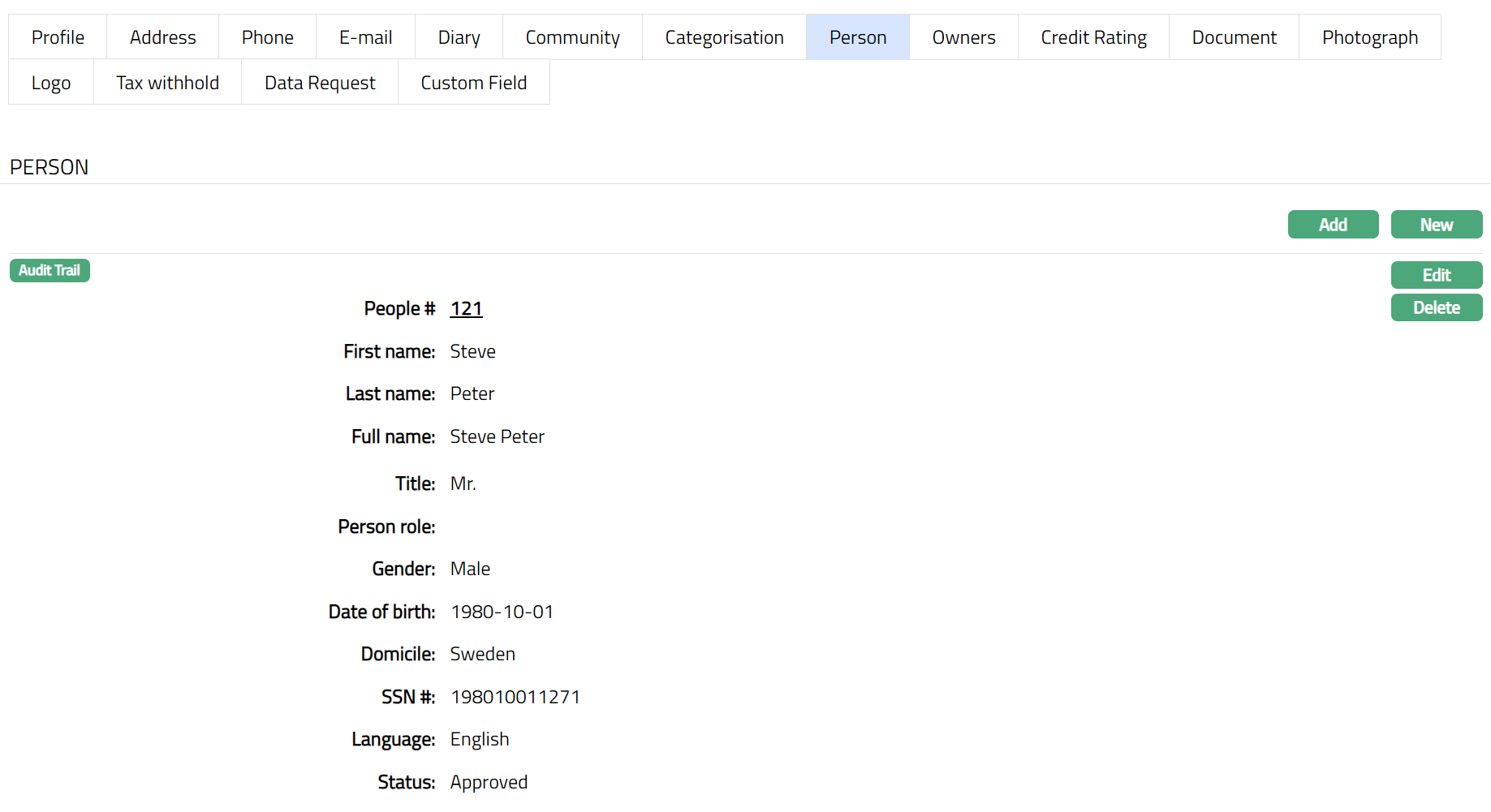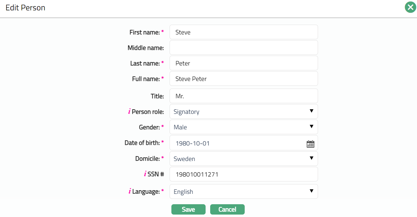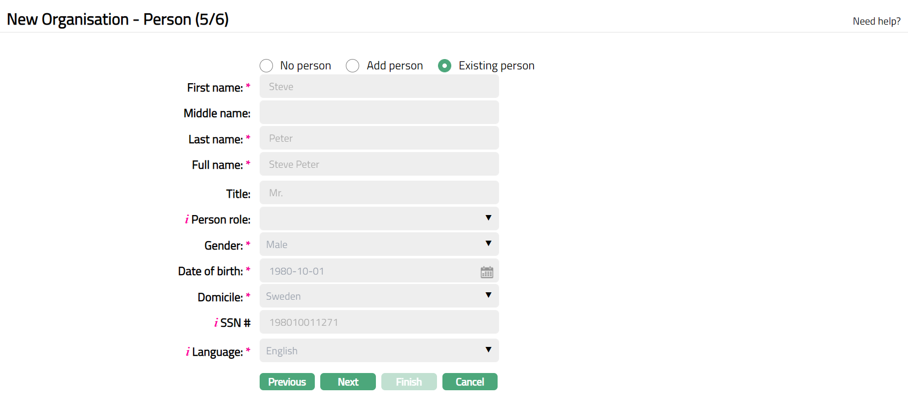If you want to enter the details of a person associated with the Organisation who has not yet been created as a Person under CRM > Person > Maintenance, then click Add person and provide the required details.