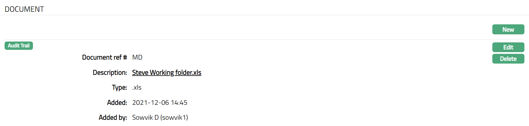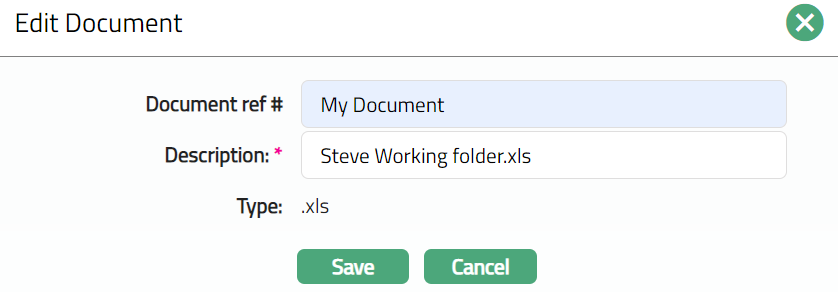 - Do necessary changes and click Save. Document page appears with the edited details.