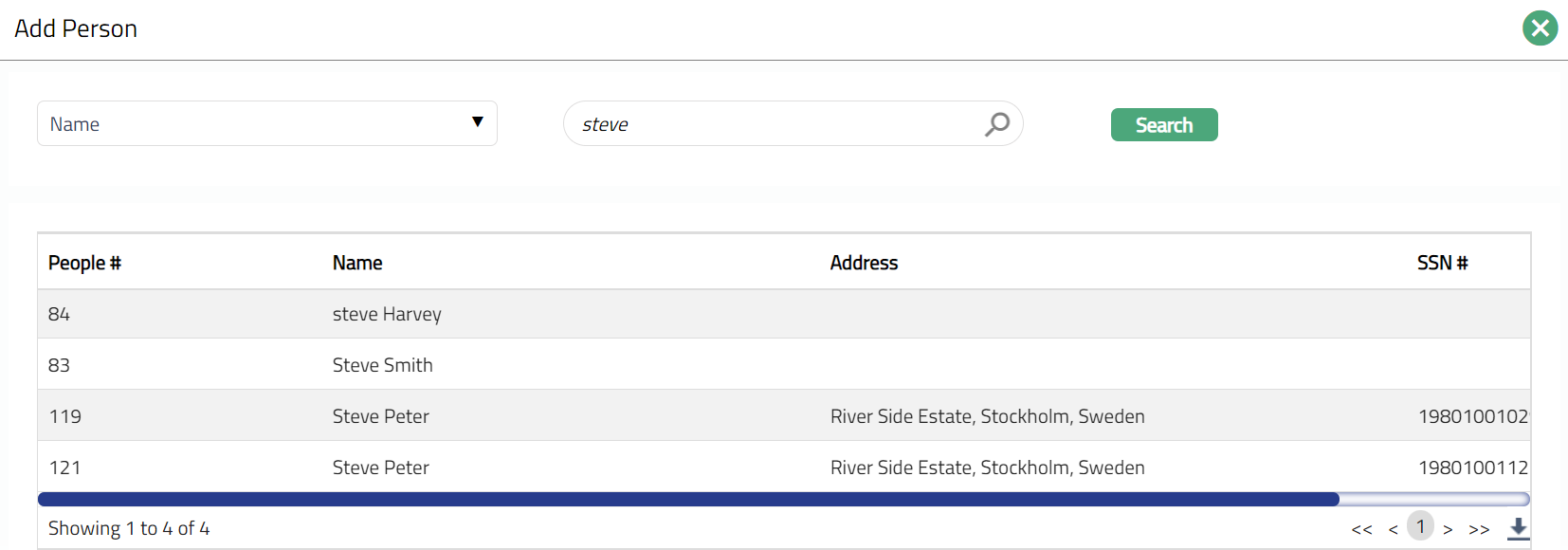If you want to enter the details of a person associated with the Organisation who was already been created as a Person under CRM>Person>Maintenance, then click on Existing person. Aura will display the Search Person window. Enter the appropriate search conditions and select the required person. All the details as maintained under Person will be displayed and the fields will be disabled for input.