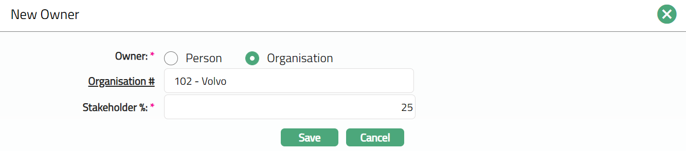 By default, No person is selected. If you do not want to enter the details of the persons associated with the Organisation at this stage, then you can select this option