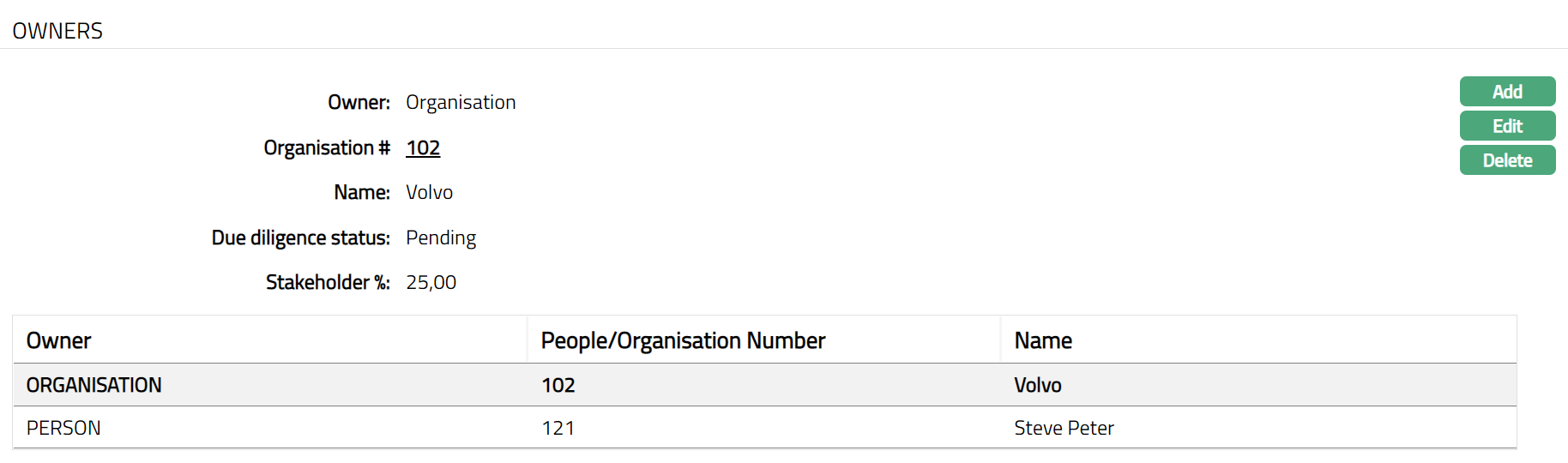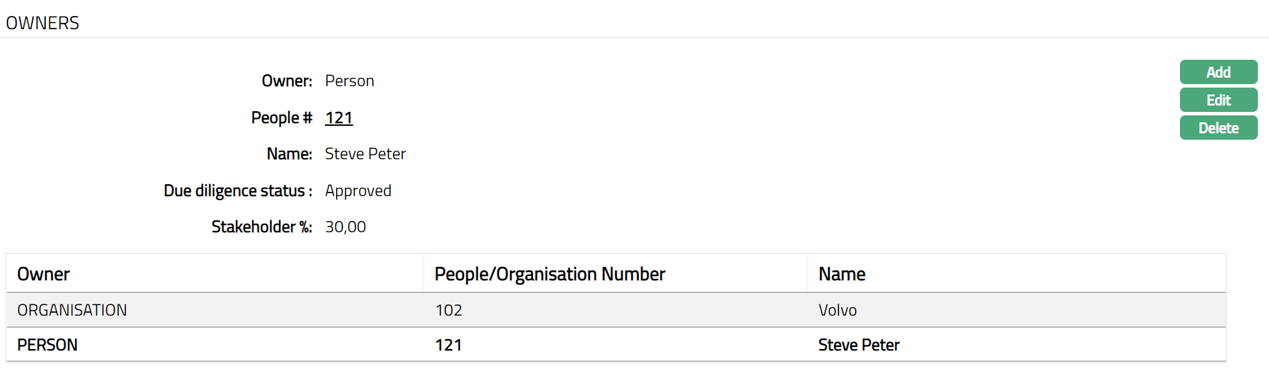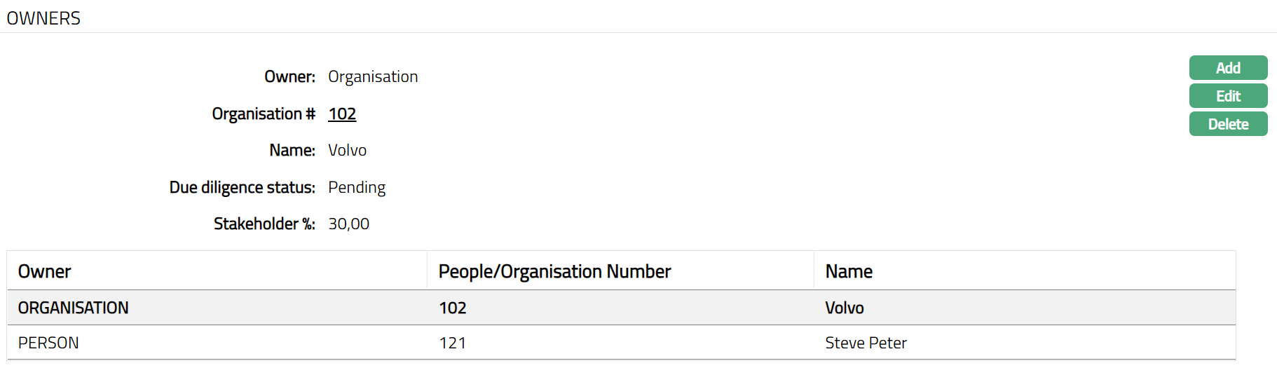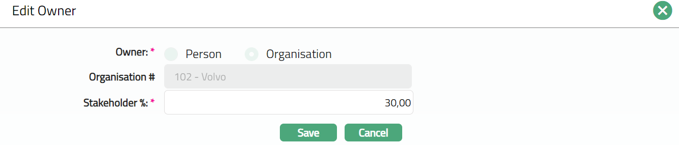 - Make necessary changes and click save. Owner page appears with the edited details.