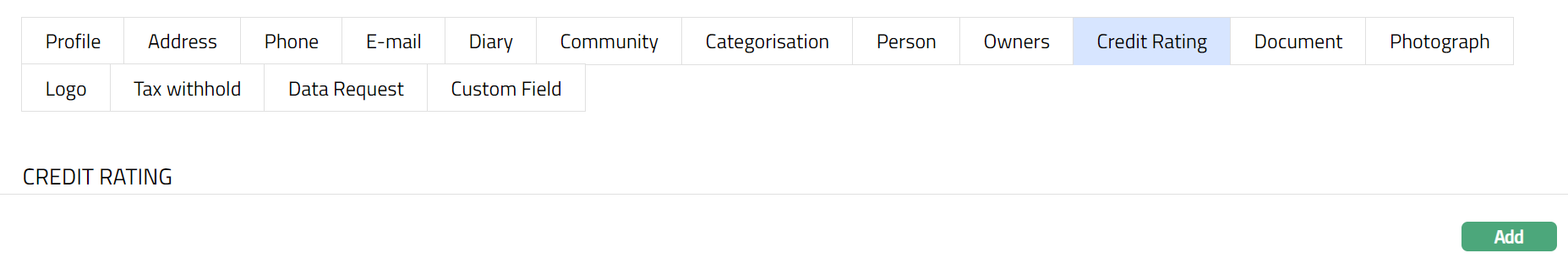 Credit rating tab allows you to create and maintain the organisation credit rating details.