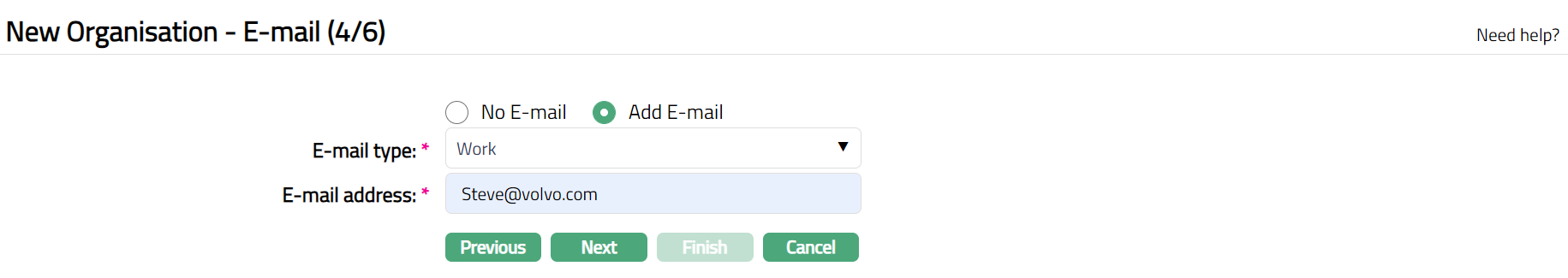 By default, No E-mail is selected. If you do not want to enter the E-mail details of the person at this stage, then you can select this option.