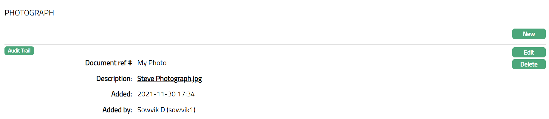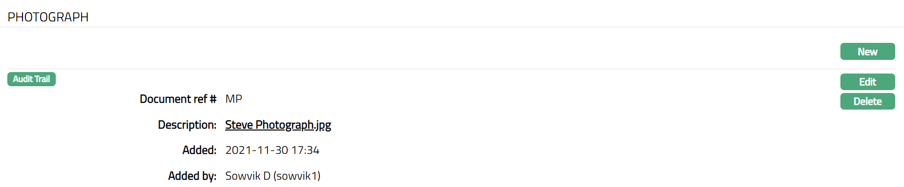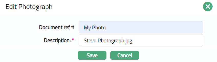 - Do necessary changes and click Save. Photograph page appears with the edited details.