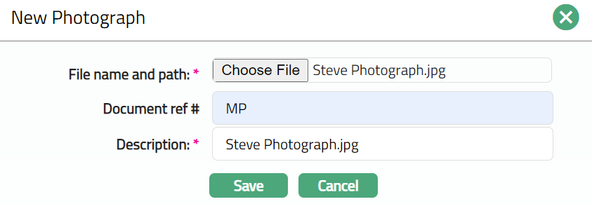 Photograph tab allows you to upload photograph related to the person. These can be in the form of scanned images or files on your computer. You can categorise the photograph as per Photograph Type and store with a photograph reference number.
