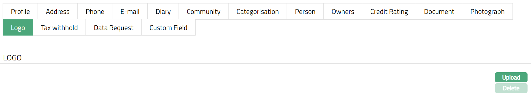 Logo tab allows you to upload Logo related to the organisation. These can be in the form of .jpg/.jpeg etc.