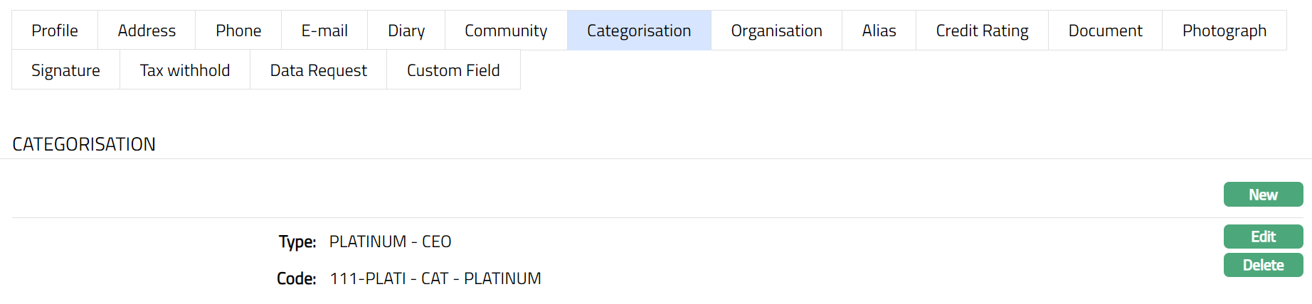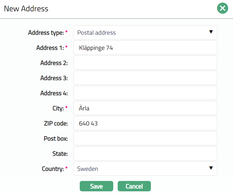 If you want to add a new address for the Person, then click on New. New Address page appears.
