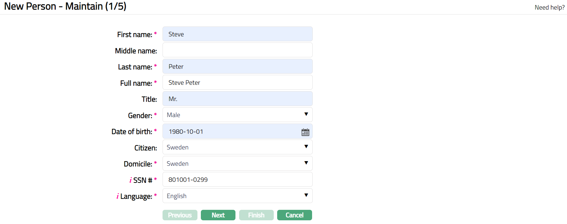 - Click Add. New Person -- Maintain (1/5) page appears.