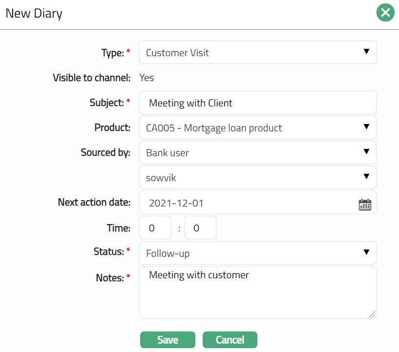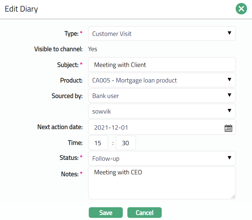 Note: All fields are editable, and the only additional field is Notes.