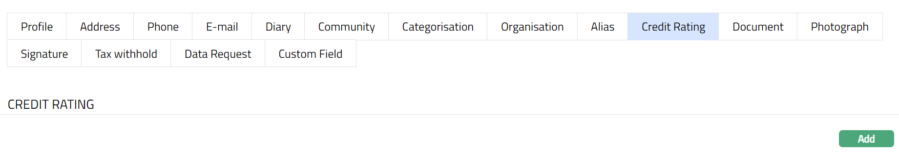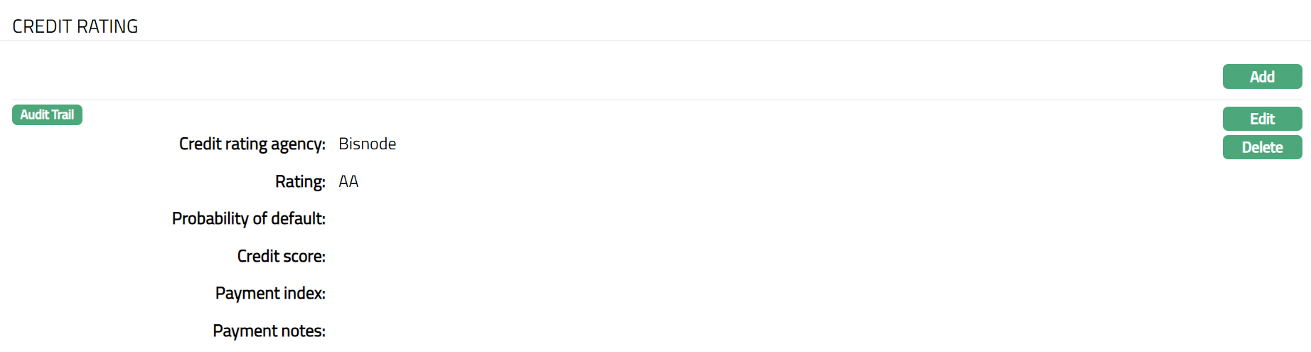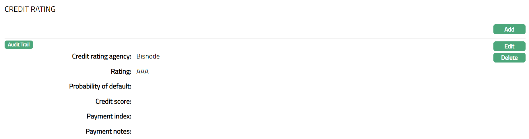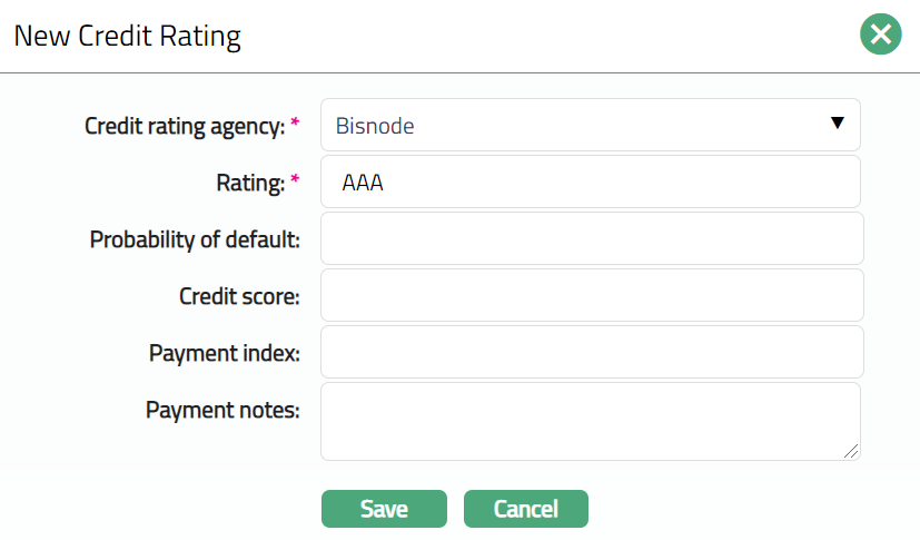 Enter Credit rating of the person. It is the credit worthiness of the person.